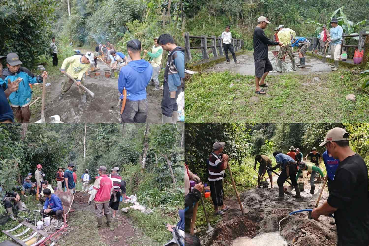 Pekerjaan dilakukan secara gotong royong, mulai dari pengumpulan dana hingga proses pengecoran di lapangan.