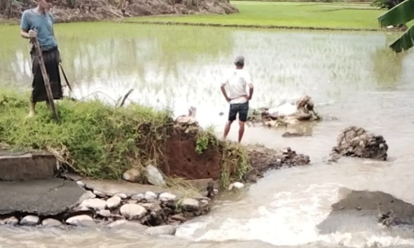 Selain itu, persoalan sampah juga memperburuk kondisi irigasi. Tumpukan sampah menyebabkan aliran tersumbat dan mempercepat kerusakan.