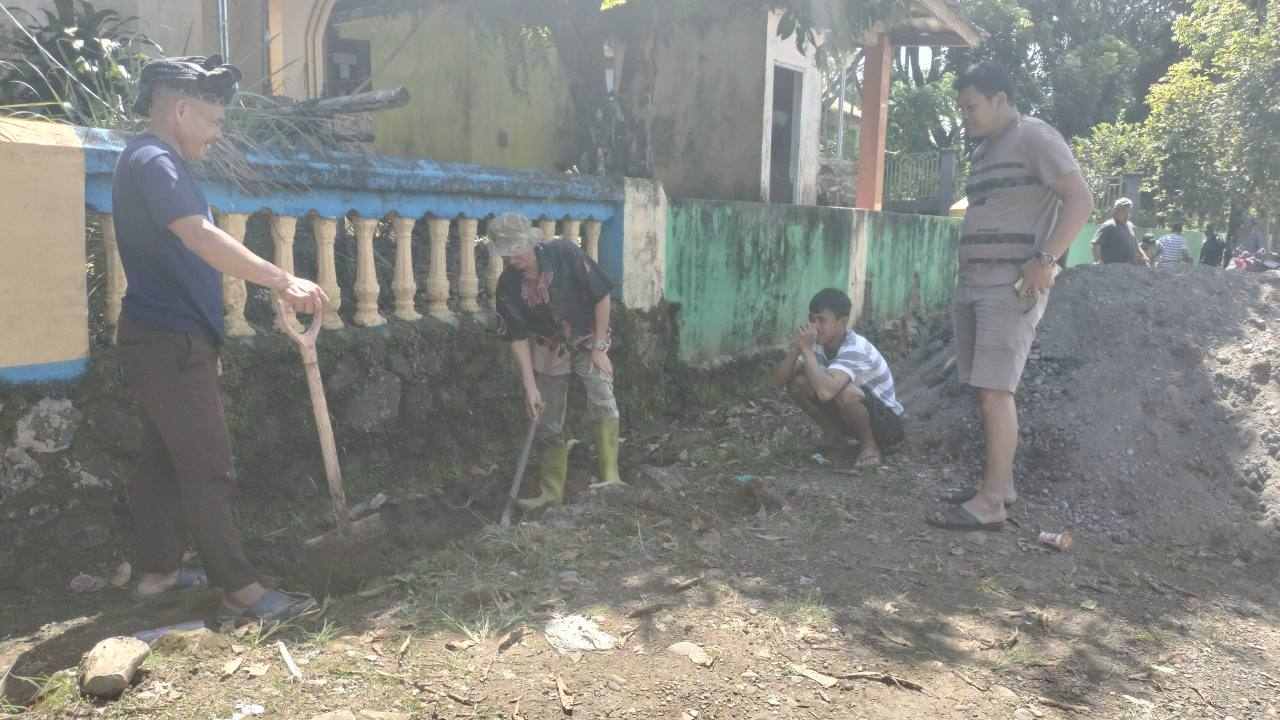 Puluhan warga bersama aparat dusun turun langsung membersihkan saluran drainase di sepanjang jalan dusun, khususnya di area depan masjid. Kegiatan ini dilakukan untuk memastikan aliran air tetap lancar serta mencegah genangan saat musim hujan.