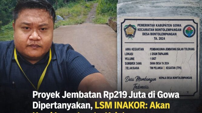 Proyek Jembatan Rp219 Juta di Gowa Dipertanyakan, LSM INAKOR: Akan Kami Laporkan ke Kejaksaan