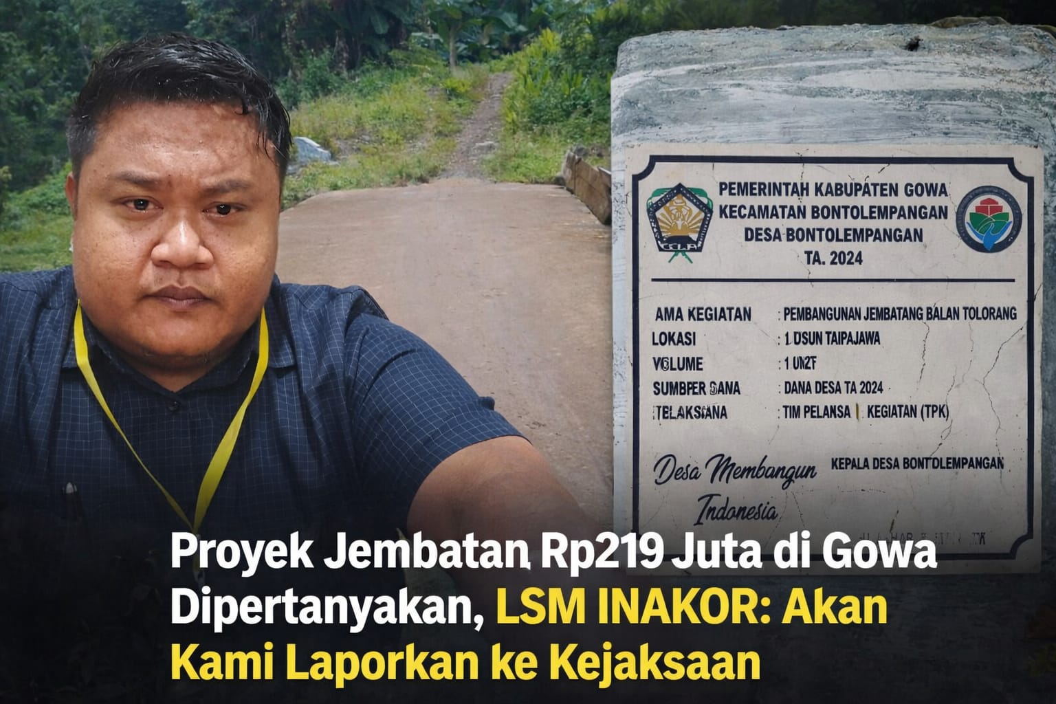 RUJUKANNEWS.com, GOWA – Lembaga Swadaya Masyarakat (LSM) INAKOR menyoroti pembangunan jembatan jalan usaha tani di Dusun Taipajawa, Desa Bontolempangan, Kecamatan Bontolempangan, Kabupaten Gowa, Sulawesi Selatan.