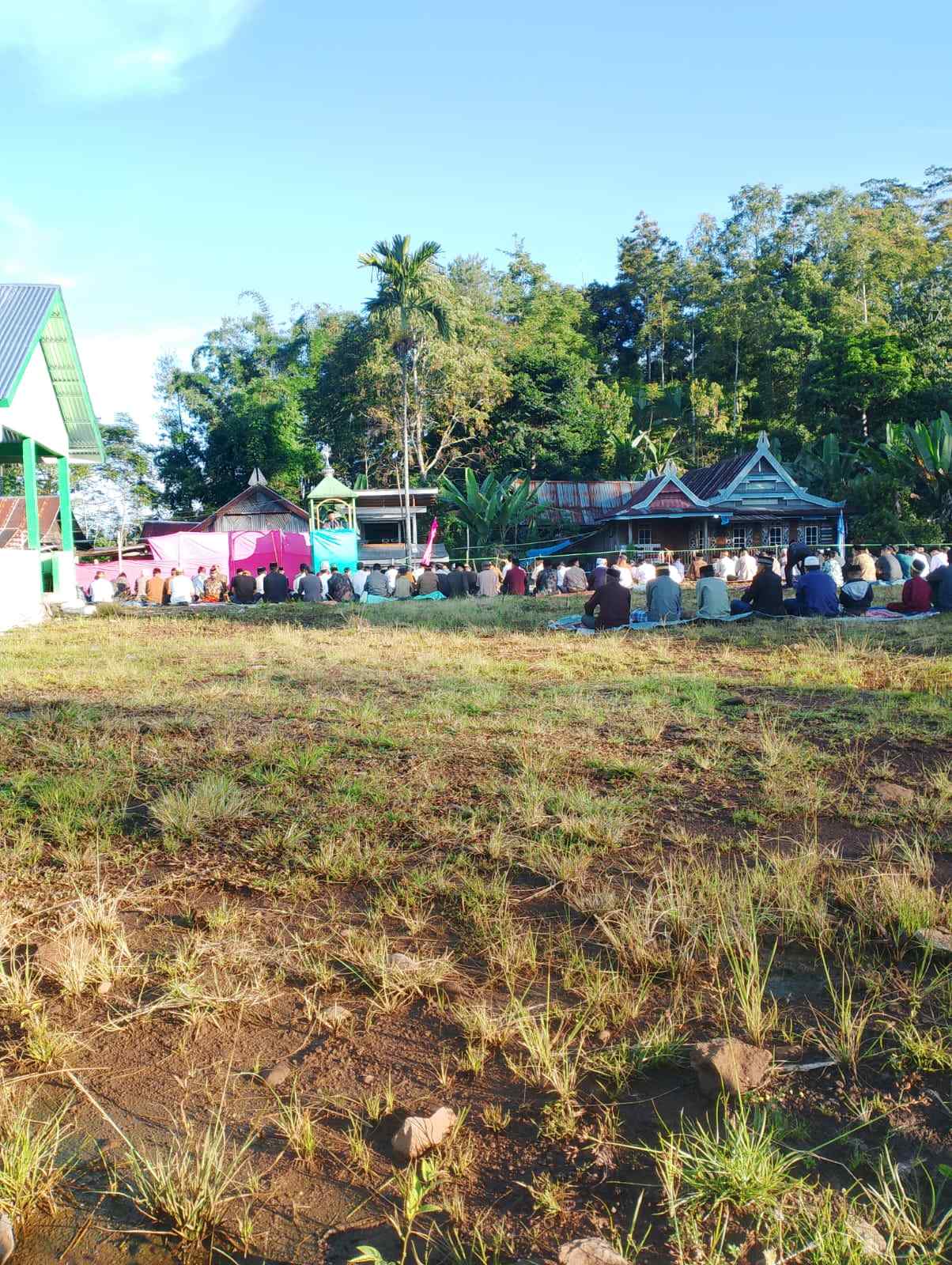 “Banyak yang cari tempat kering, jadi saf tidak tersusun rapi,” kata warga, Ansar.
