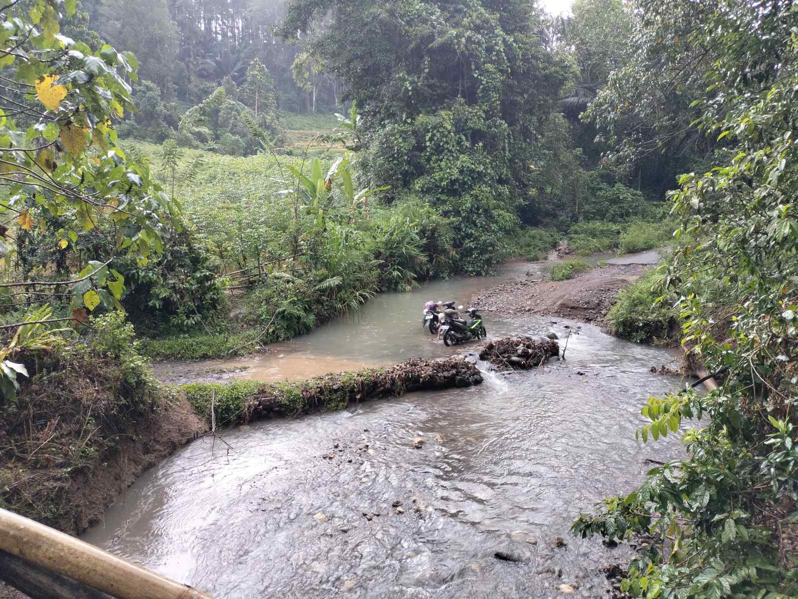 Tidak jarang, warga harus menuntun sepeda motor, bahkan melewati aliran sungai secara langsung ketika jembatan tidak memungkinkan untuk dilalui.