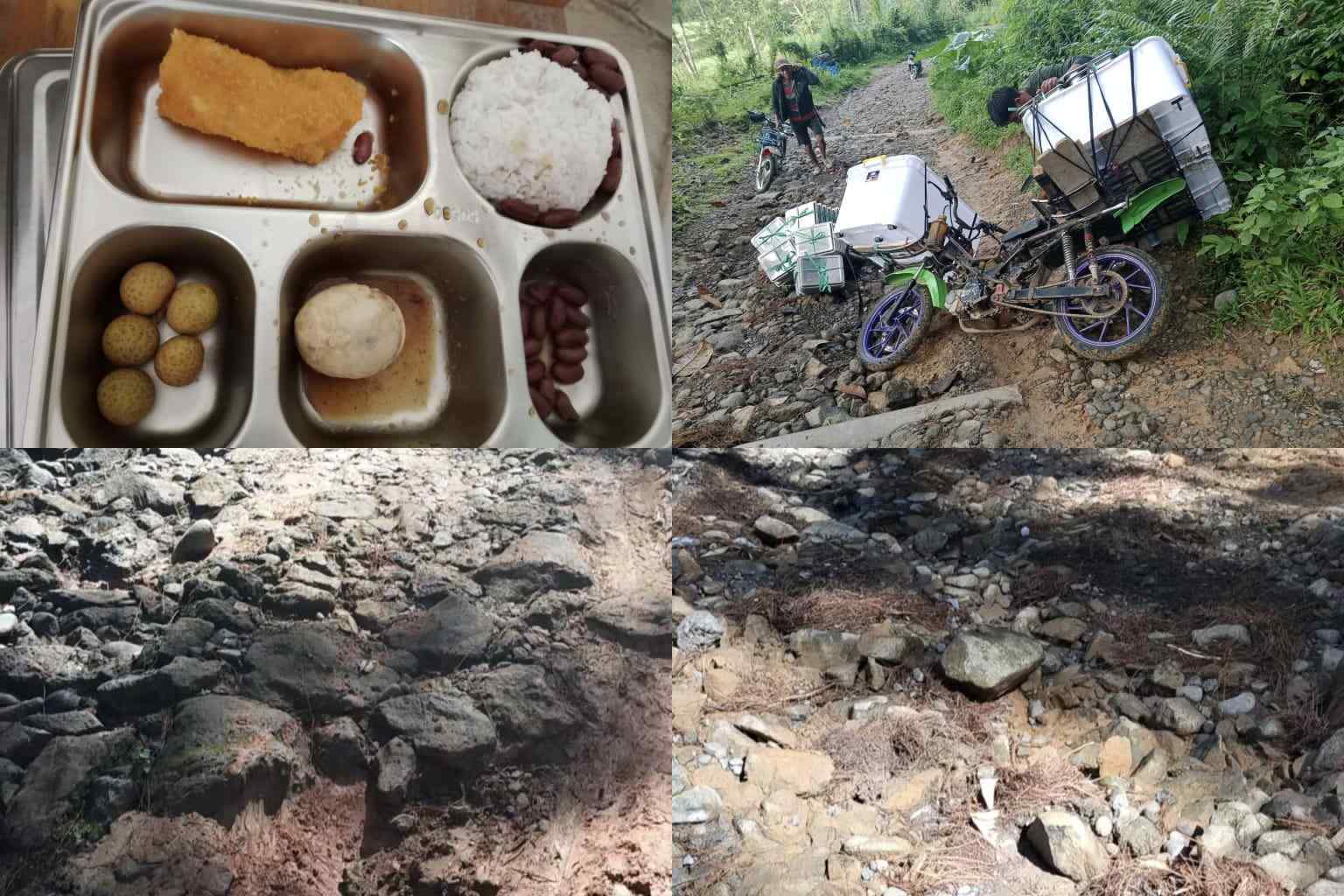 Diduga, dampak jalan rusak kembali terjadi, kali ini terhadap kondisi makanan yang dibawa ke sekolah.