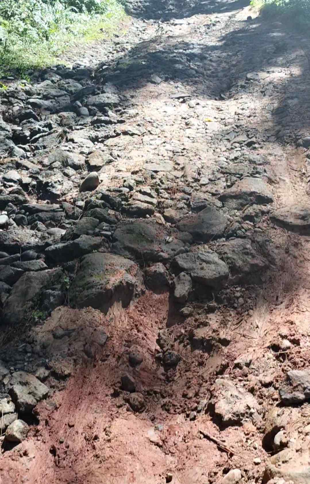 Dari pantauan di lapangan, jalan sepanjang kurang lebih 1 kilometer tersebut terlihat berlumpur, berlubang, dan dipenuhi batu. Di beberapa titik bahkan tergenang air, dengan bekas roda kendaraan yang cukup dalam.