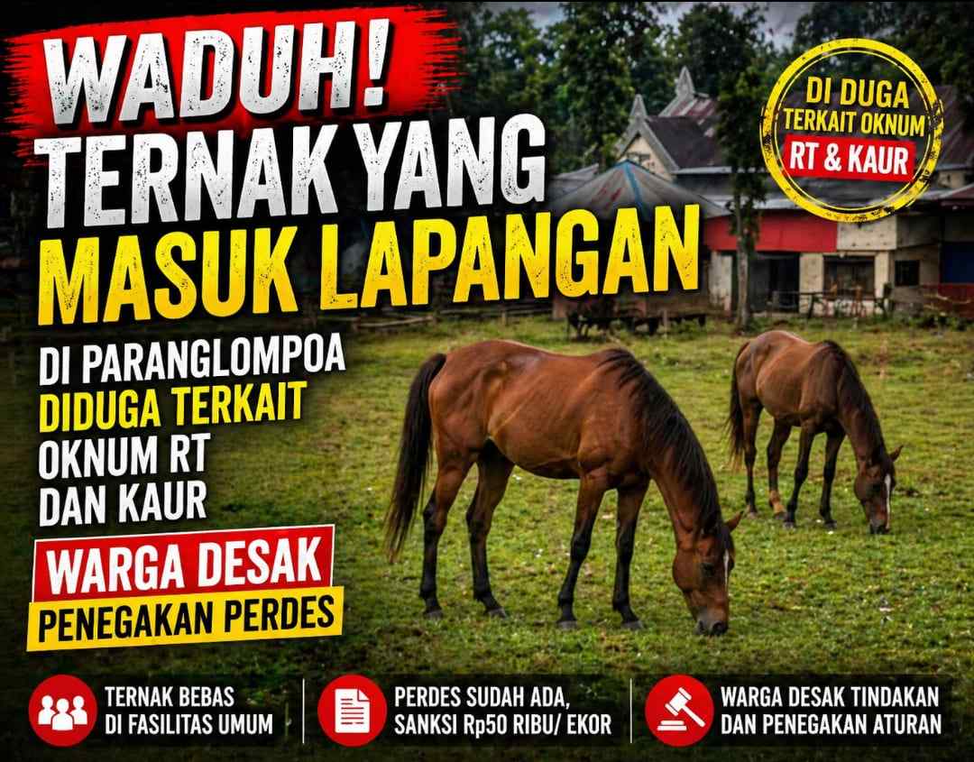 RUJUKANNEWS.com, GOWA — Persoalan ternak yang masuk ke lapangan Desa Paranglompoa, Kecamatan Bontolempangan, kembali menjadi sorotan dalam perkembangan terbaru, Sabtu (25/04/2026).